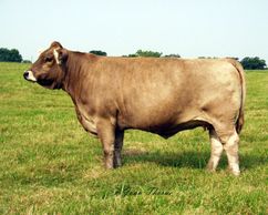 A North Star Vernon daughter that impacted our Braunvieh and Simmental herd. Beautiful female that was shown as a heifer with success. A full sister sold for $15,000 in one of our production sales. She was a consistent flusher and we have sold many high priced progeny out of her in production sales. We still have embryos from this top Donor for sale. Check out the Semen and Embryos Page